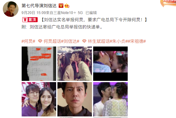 就在9月,何炅就遭到了“第七代导演刘信达”的实名举报:要求广电总局下令开除何炅!