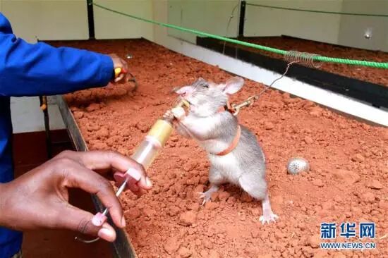 在坦桑尼亚莫罗戈罗省,非政府组织阿波波研究机构正在对一群巨鼠展开特殊扫雷训练和演练。