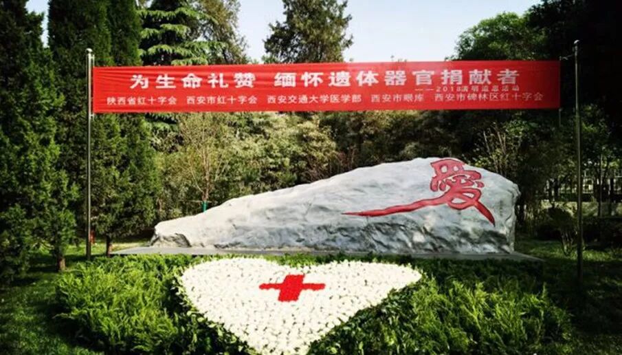 一场特殊的清明祭奠: 向遗体器官捐献者致敬 省、市红十字会、西安交通大学医学部、西安市眼库4日在西安交通大学医学部举行主题为“为生命礼赞缅怀遗体器官捐献者”2018清明追思活动。