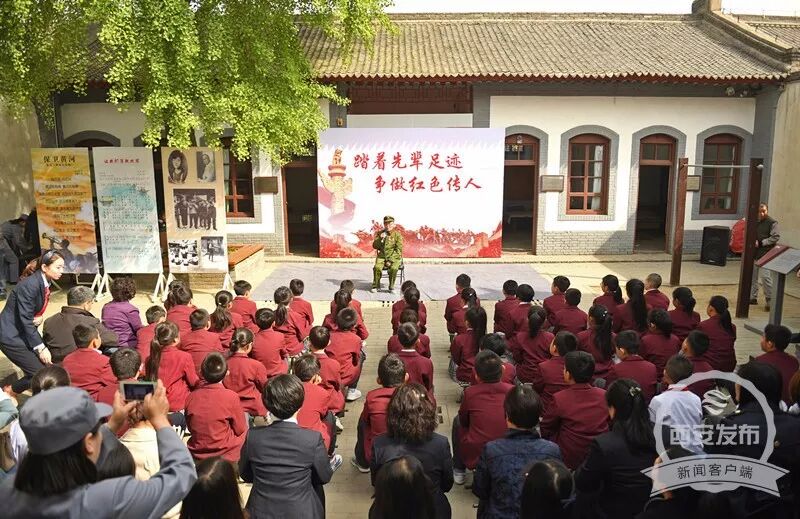 清明祭英烈 老兵在西安八办纪念馆宣讲革命传统 4日上午在八路军西安办事处纪念馆里,穿着绿军装、带着军功章的革命老前辈杨瑞生为游客和部分小学生宣讲革命故事。