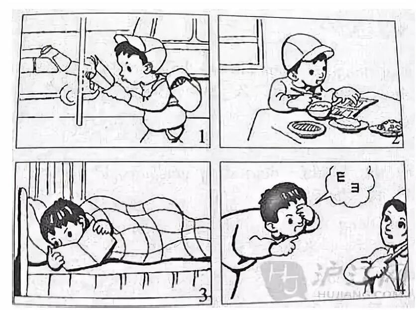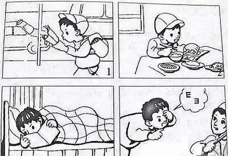 3.通过仔细观察,展开想象,能够写出每幅图“最重要的情节”,必须详细写。所谓“详细写”,就是能写出人物间的对话,图中的人物具体是怎么做的,并能够用上恰当的动词。别人一看就知道这句话写得就是这幅图的内容,而不是其他图的内容。