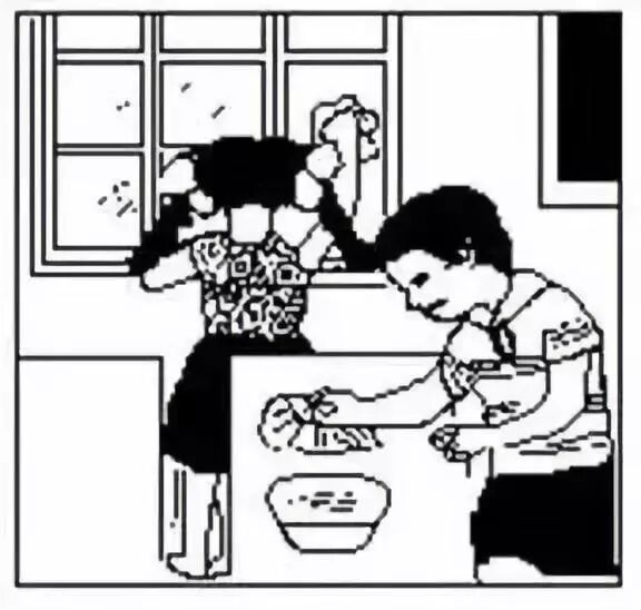 图中有什么人?在什么地方?干什么?试着写两句话。