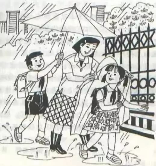 放学了,天下起了大雨,小明、小蓝和小天三人披着雨衣一起回家。