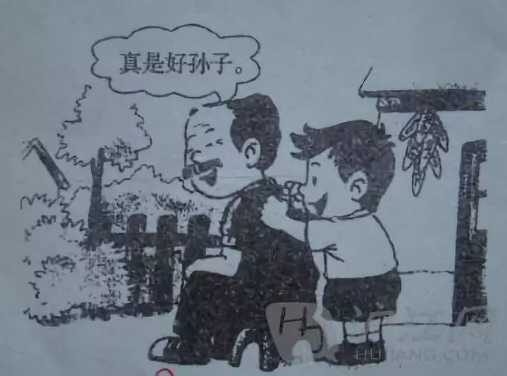 一天放学回家,东东看见奶奶在院子里捡菜。他连忙跑过去给奶奶捶背,看着孙子这么关心自己,奶奶高兴极了。