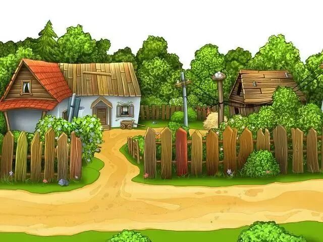 图上有红色的房子、弯弯的小路和绿色的树木,多美啊!