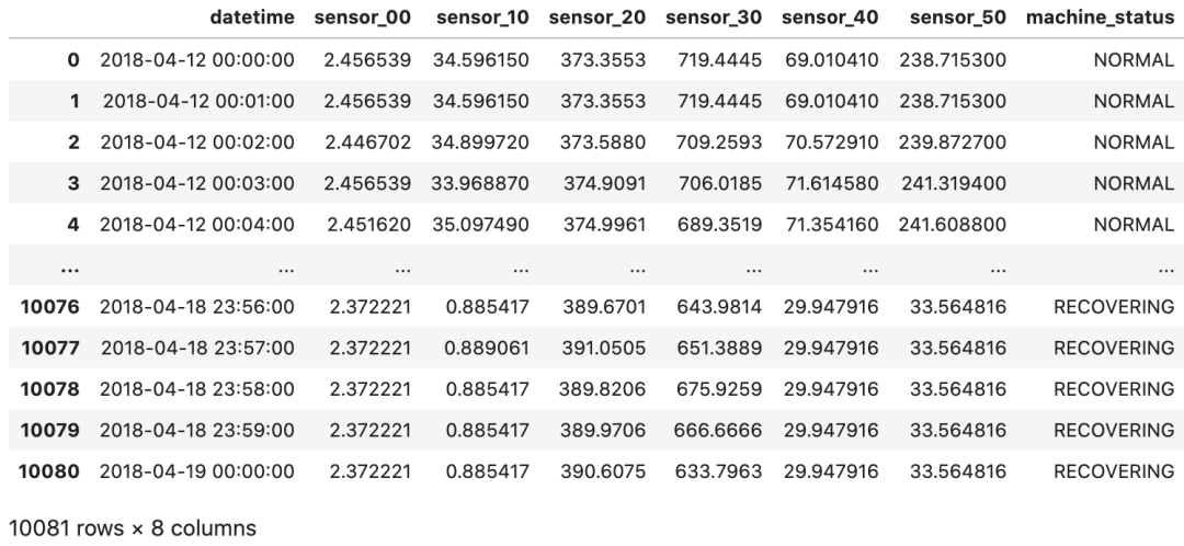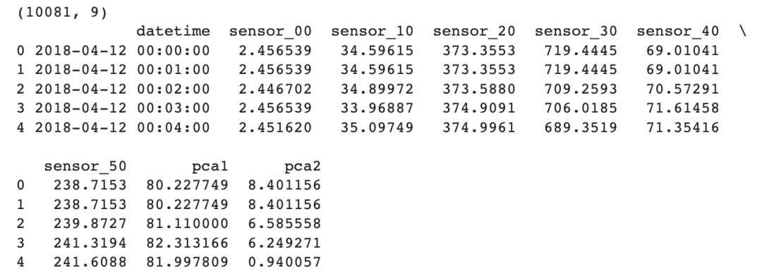 输出形状:(10081, 2)df_data = df.drop(columns=['machine_status'], axis=1)