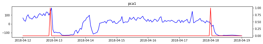 对于第一个PCA组件,可以绘制数据,并直观地检查异常和时间序列之间是否存在关系。