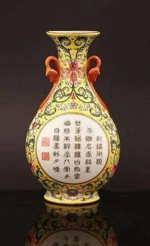 这个花瓶很特别,因为它上面有乾隆皇帝的题词,而且一定是他委托制作的。