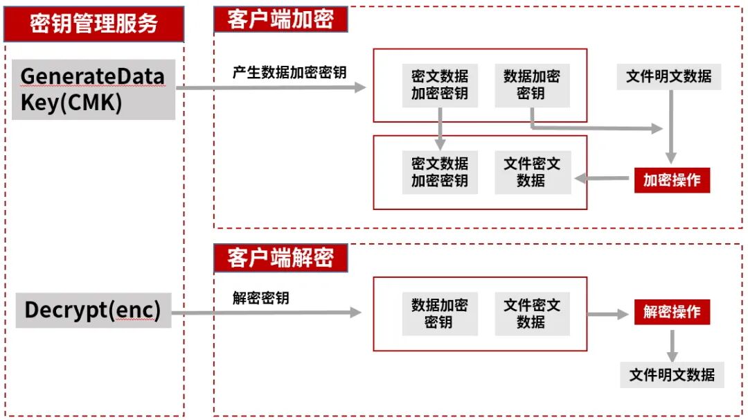 敏感信息加密是密钥管理系统的核心能力,实际应用中主要用来保护服务器硬盘上敏感数据的安全(小于4KB),如密钥、证书、配置文件等。
