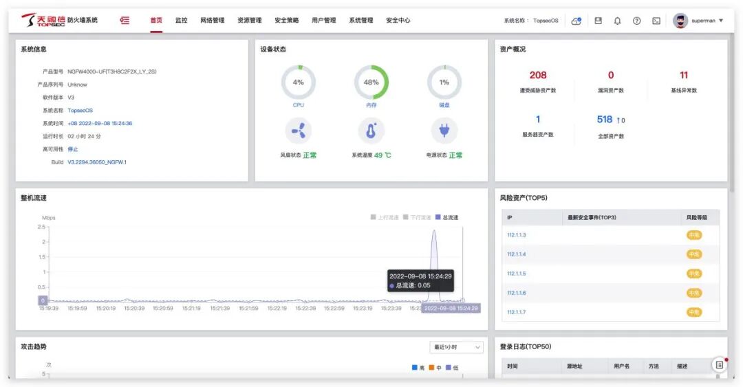 天融信下一代防火墙紧随新型技术的不断发展,集资产发现、资产管理、资产风险分析、协同防护于一身,以主动式资产管理为基础,一体化资产防护为目的,帮助客户建立全域资产防御体系,提升资产管理效率。未来,天融信将持续加大在防火墙技术和产品方面的投入,为客户打造高品质、高性能、高可靠的信息安全产品,为数字中国建设保驾护航。