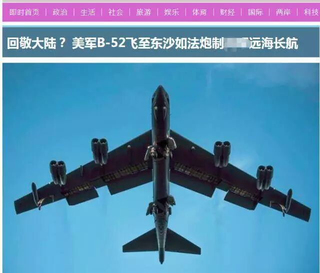 【环球网】据台媒报道,美国空军两架B-52战略轰炸机呼号HERO01和HERO02,从关岛起飞,经巴士海峡飞抵东沙群岛东侧附近折返,距广东海岸最近处仅250公里。台“军事专家”则认为此举显然是美机美军机的飞行路线是典型的攻击航线,用以回应中国解放军近日频繁进行的远洋训练。 目前美军方面并未对此事作出回应。