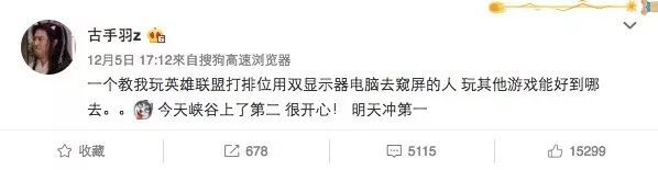 12月5日,卢本伟曾经的徒弟古手羽发了一条微博,再加一记锤子。
