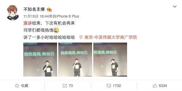 11月份,中传南广学院做了个“你最想请谁来学校演讲”的调查,得票最高的是卢本伟。