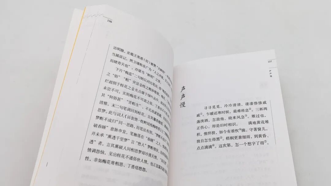 寻寻觅觅,冷冷清清,凄凄惨惨戚戚。乍暖还寒时候,最难将息。三杯两盏淡酒,怎敌他、晚来风急。雁过也,正伤心,却是旧时相识。 满地黄花堆积,憔悴损,如今有谁忺摘。守著窗儿,独自怎生得黑。梧桐更兼细雨,到黄昏、点点滴滴。这次第,怎一个愁字了得。