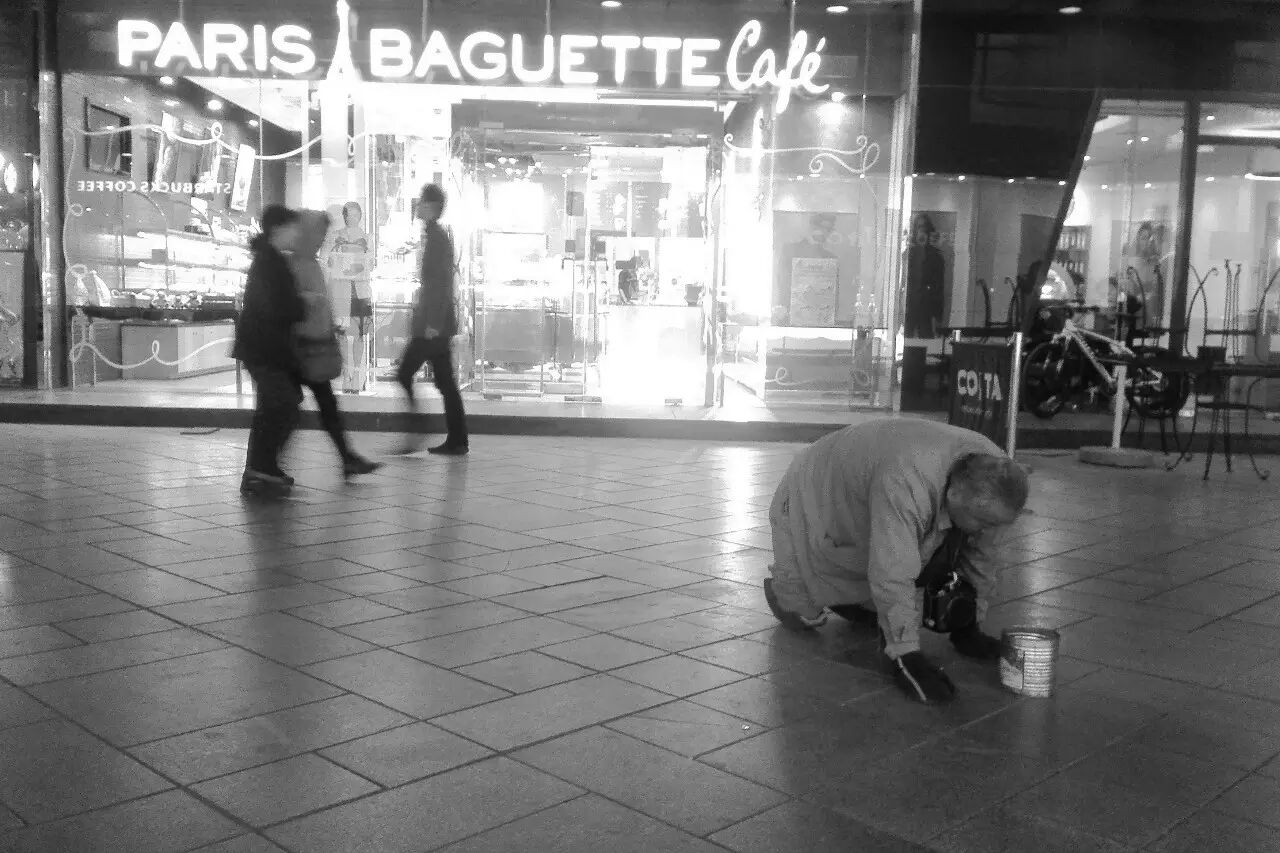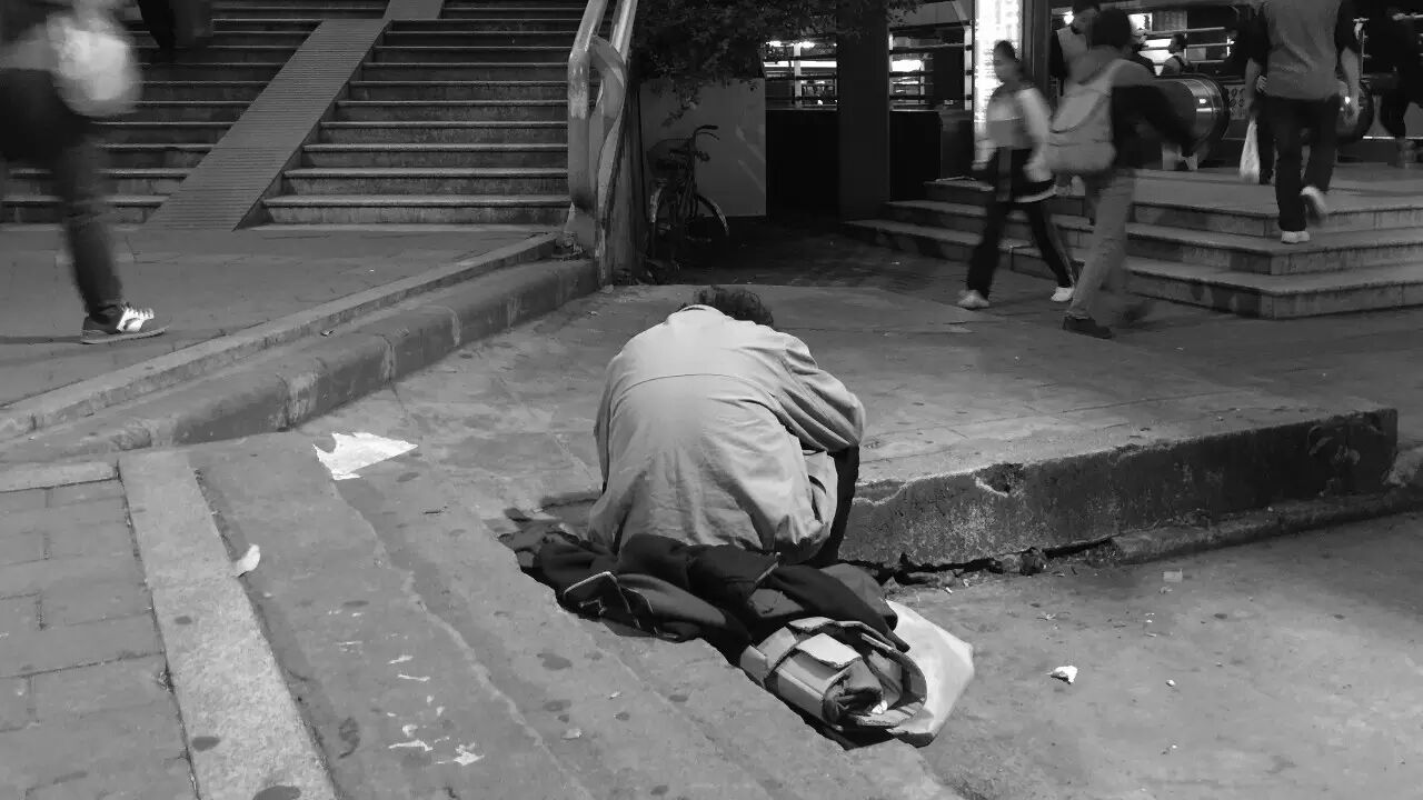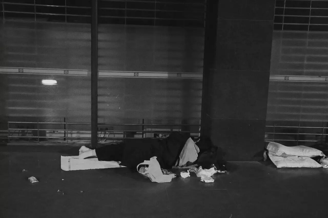 我的心顿时静了下来,寒潮来临,那些渴望来广州过冬的流浪汉,那些没有备足衣物的拾荒者,那些乞讨了一天无家可归的人,他们没有心情堆雪人,甚至可能都没有手机去拍下雪景,当我们端着一杯热咖啡暖了暖身子的时候,他们的生活状态却可能是这样的: