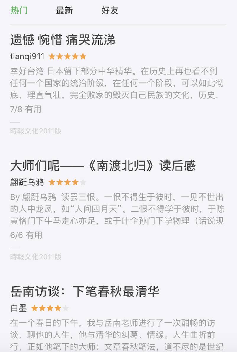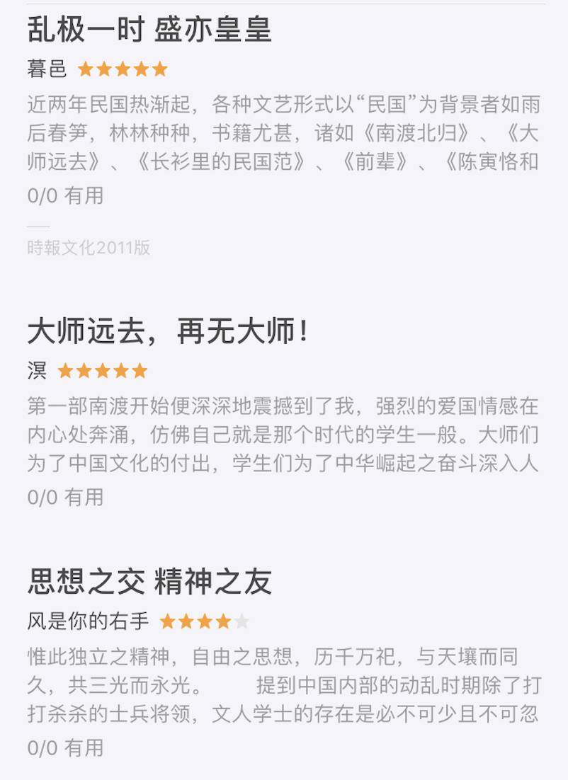 任志强更感言:“也许是年龄与时代的原因,我读《南渡北归》第三部更有味道,欲哭无泪。当“南渡残生梦独多”和“北归残梦终成空”时,历史还原了真相。同为天涯两岸的民族各自走了一条不同的路,却隔不断血脉相连的相思之情。”