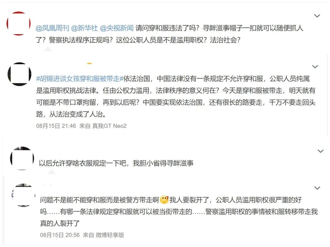 试想,倘若有人在日本、在美国因穿汉服被当地警方带走,国人听闻后会反应如何?