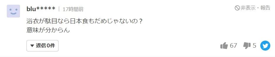 “浴衣不可以穿的话,日料也应该被禁吧?”