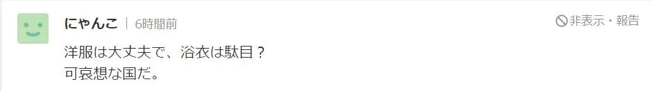 “因为穿着浴衣而被扣上了违反公共秩序的帽子,和全裸同等对待??这是一个什么样国家!”