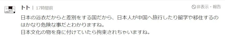 就因为穿浴衣而被歧视。那么日本人去中国旅行、留学、移居也会被排挤吧。