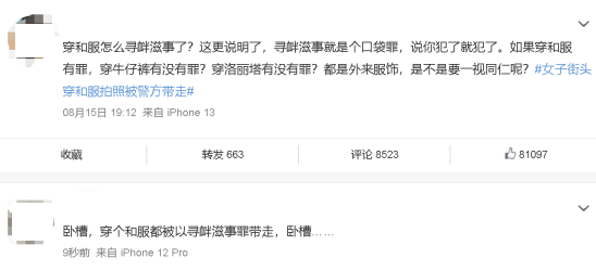 “既然(在中国)穿浴衣会被逮捕,那么(在日本)穿着旗袍的妈妈桑们也有寻衅滋事嫌疑吧。我觉得(穿衣服)不过是一种时尚 。”