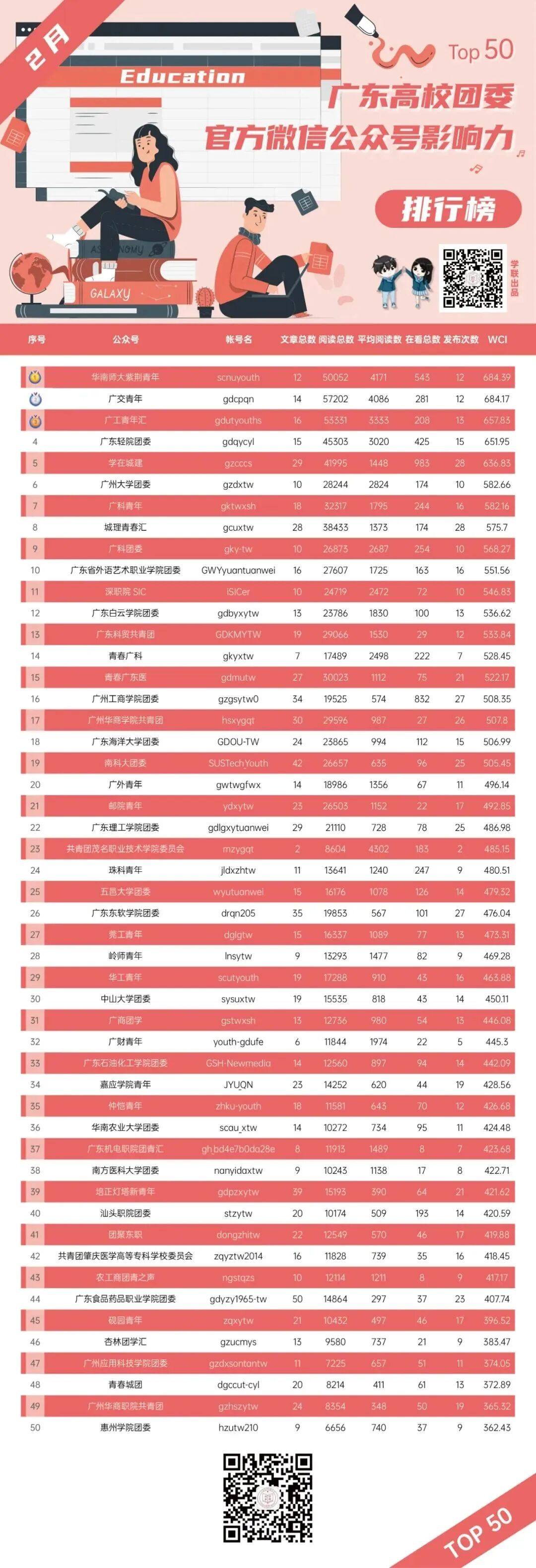 ▲ 广东高校团委官方微信公众号影响力排行榜