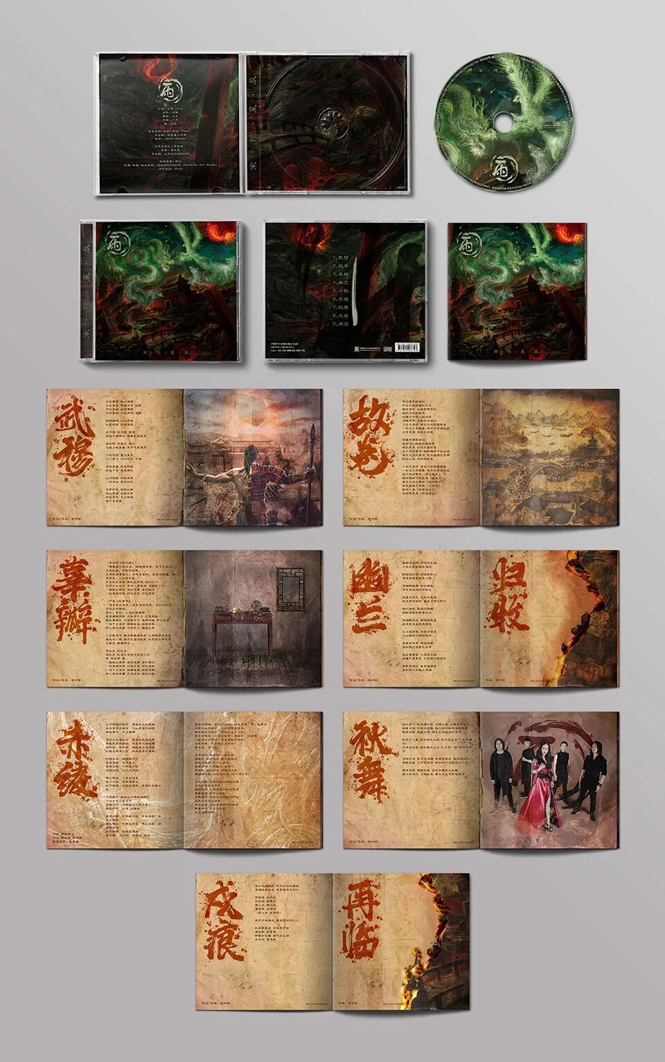 最后一首《再临》也是演奏曲,也是整部作品的结束曲,就像乐队官方介绍的一样,作为整张专辑的点题之作,犹如人之将死,脑海中浮光掠影,大宋300年的画卷一一倾泄而出,余音绕梁三日。小小的古筝在这里作为了主角,与箫声和笛声一起,再加上背景的弦乐,琴瑟和鸣说的就是这种感觉吧,特别适合闭上眼睛,用你的想象力去描绘,用你的心去感受。