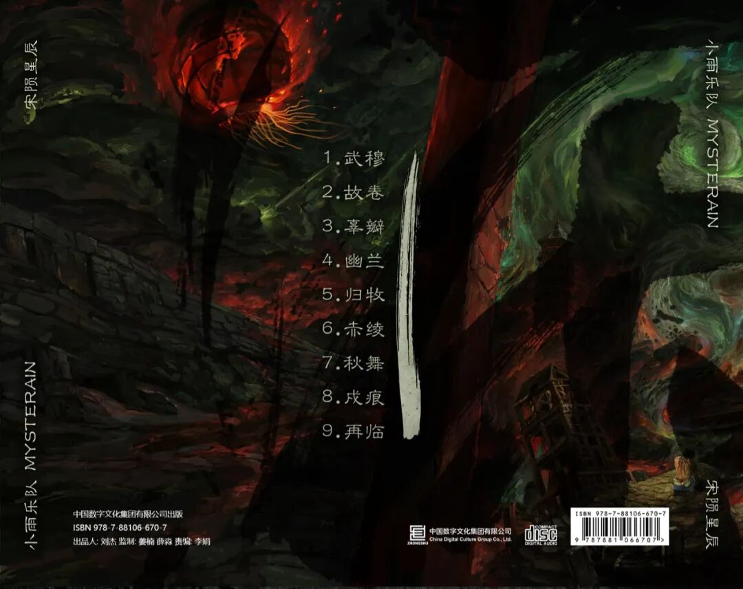 其实《宋陨星辰》的雏形早在2018年就形成了,当年发行的EP《赤绫》中,《赤绫》和《秋舞》两首新歌就带来了与《破墨山谷》非常不同的感受,粤剧和古筝元素的加入,不但从听感上带来了新鲜感,而且也将小雨音乐的创作空间和表现力上升了一个等级,这两首歌在乐迷中也获得了非常不错的评价,相信也给乐队为后续的创作带来了极大的信心和创作的动力,然后……2019年一整年乐队啥动作也没有……直到今年初一曲《武穆》横空出世。