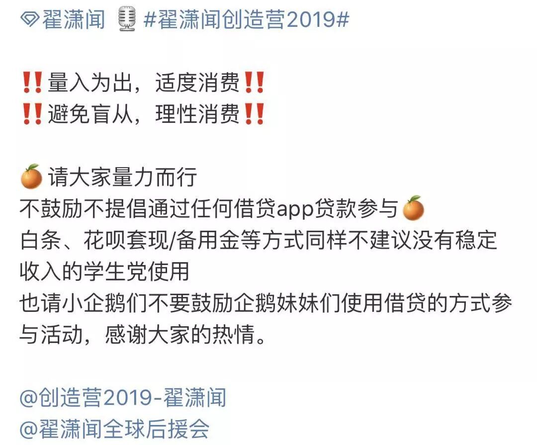 追星本来就是为了让自己更快乐,让自己和爱豆一起变得更好。但如果因为追星反而让自己变得负债累累,忍饥挨饿透支着自己的身体,甚至还走上一条恶性循环的不归路,南风觉得这么做未免有些得不偿失。