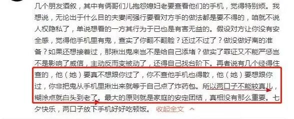 他说,夫妻之间不能强行看对方的手机,谁都经不住查,只有糊涂才能白头到老。