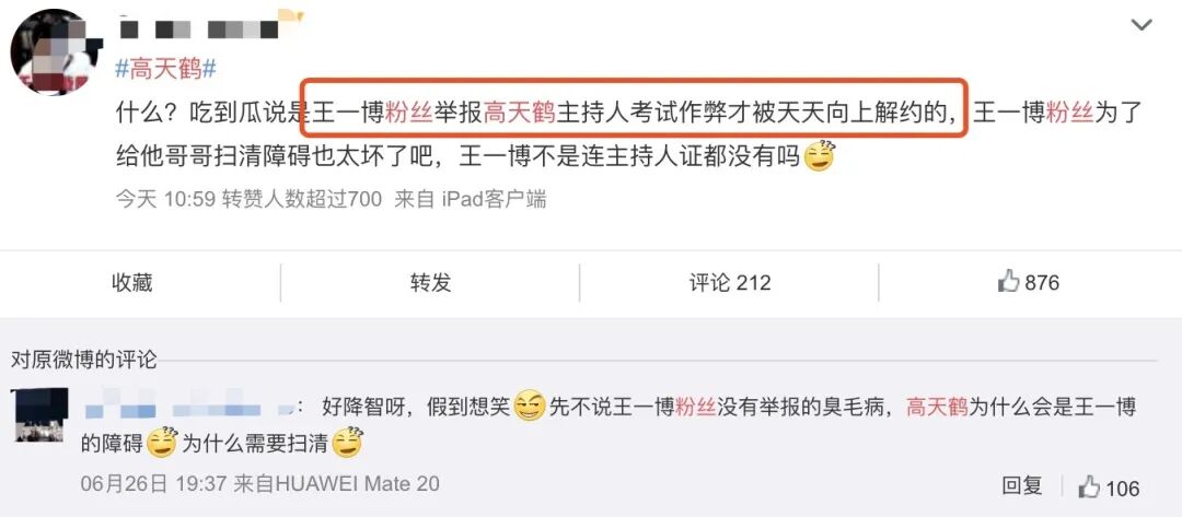 总体看下来,南风觉得高天鹤粉丝相对来说还算是比较理智的,没有抱怨也没有为他辩解开脱,错了就是错了。