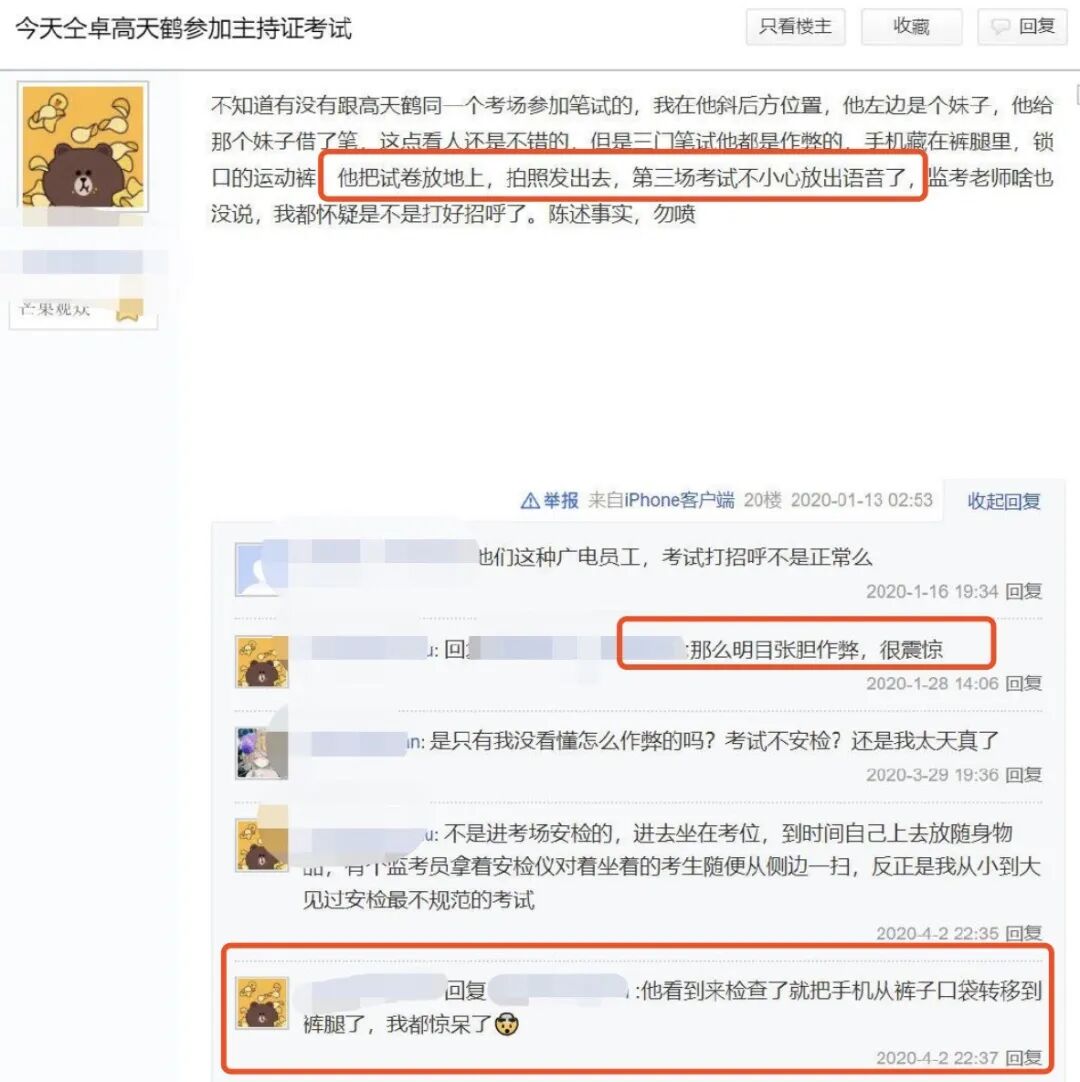 第四个是因为高天鹤被举报去年参加主持人考试的时候现场作bi。