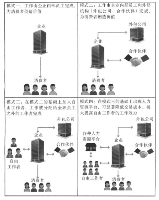 其四,外包和众包模式持续深化,灵活用工和零工经济日趋成熟。