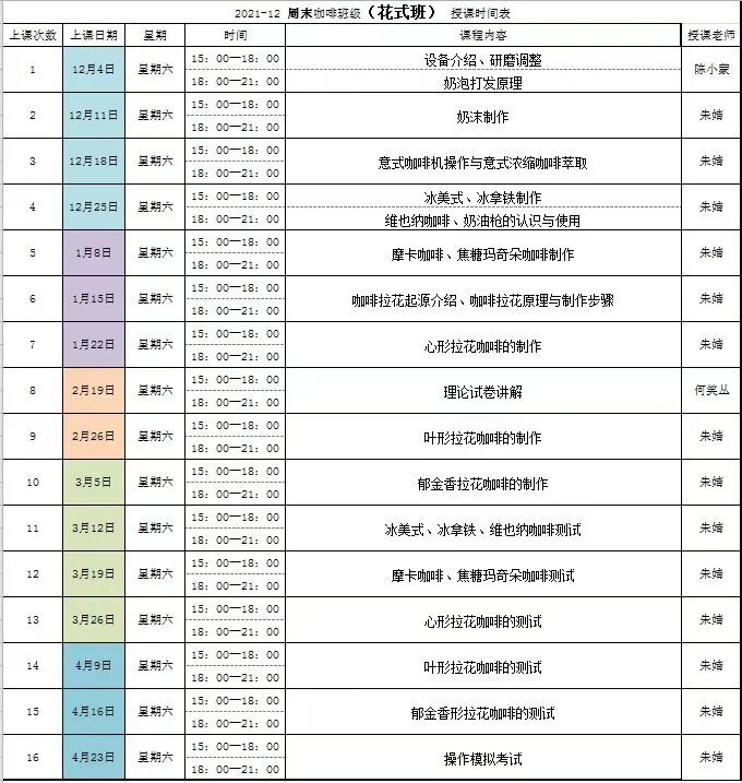 于是我查询了相关的资料,发现在上海有两种培训,一个是花式咖啡,一个是经典咖啡。两种的报名费都是1630元,材料费1000元,一共16次培训,32节课,每节课3小时左右,需要上4个月,考过之后才给1500元的补贴。面对上课时间我产生了犹豫,毕竟要连续4个月的周六去上课,算上路上花的时间,一次就要花费8个小时。如果只是为了一份兼职,代价有些太大了。没想到11月底开始,公司陆续有裁员消息传出,通过新闻、各个渠道的消息我得知,我们公司需要裁员30%以上,leader也委婉的说因为我们项目产出不够,原本需要全部砍掉,可因为是核心项目,所以最终确定裁员50%。许多同事上午还在工作,下午就开始收拾东西了,一时间公司人人自危,生怕悬在自己脑袋上的达摩克利斯斩下。我虽然不在被裁之列,但在公司宣布裁员的那天,我决定考证,立马报名了咖啡师培训班,毕竟互联网现在风云诡谲,谁也说不清楚潮水的方向。在大时代下,每一个小人物都值得被看见,每一个小人物都不普通。