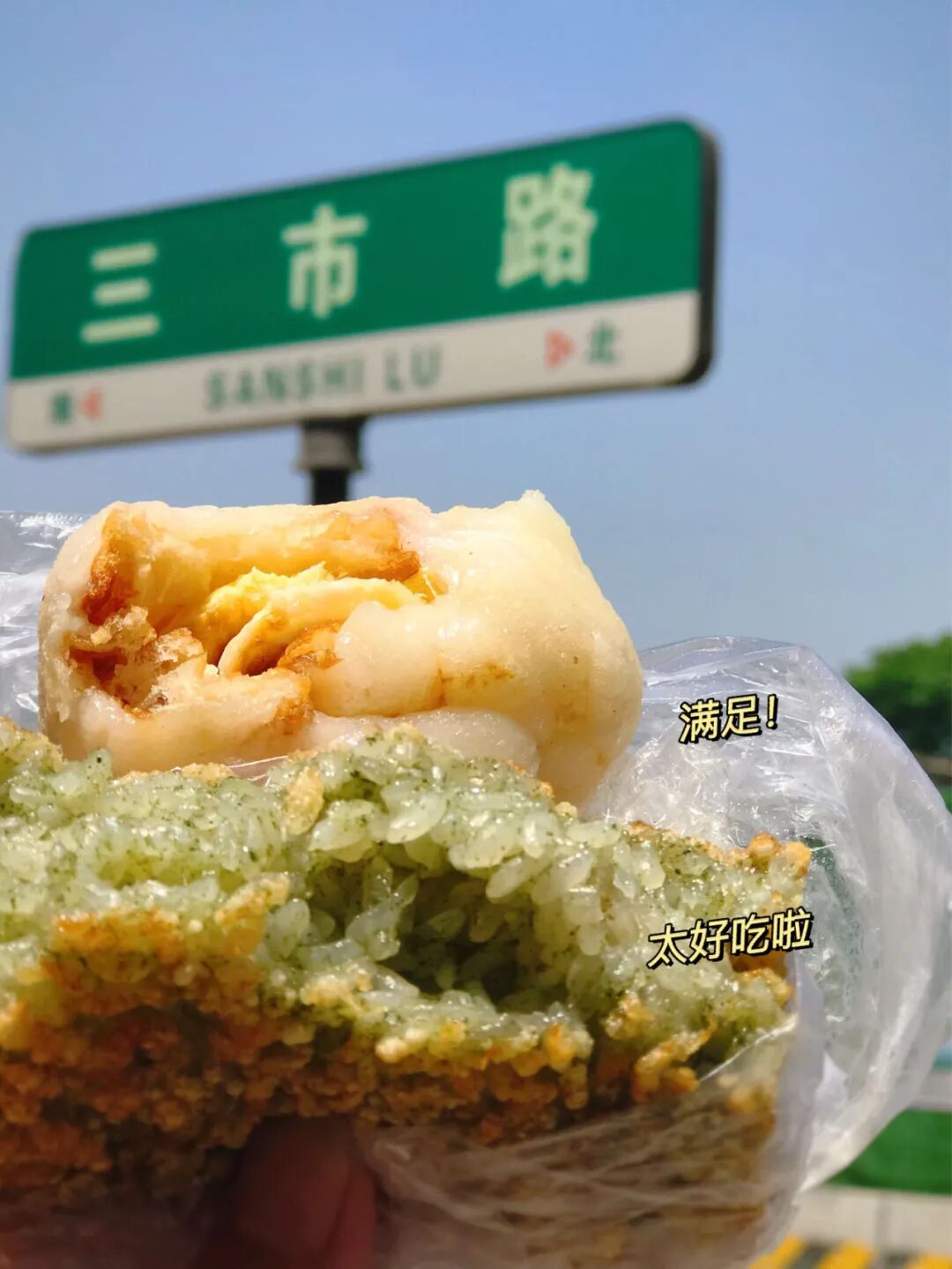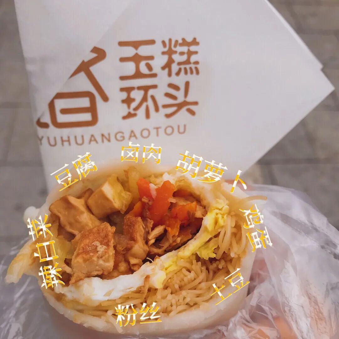 年糕、油条,这两样都是能单拎出来当做早饭吃的食物,宁波人偏把年糕压扁,卷起油条、香肠、里脊等,碳水+碳水的组合无敌了,一个下去大半天都不饿。