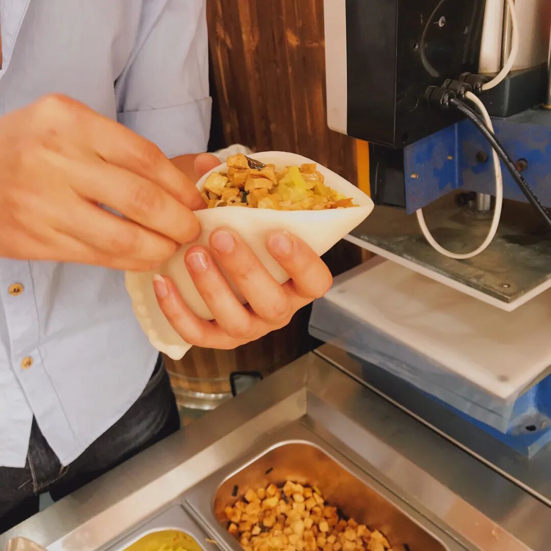 一个年糕饺都有成人手掌那么大,里面的配菜更是塞得圆圆鼓鼓,把嘴张到最大程度咬下一口,肉汤汁特别点睛。