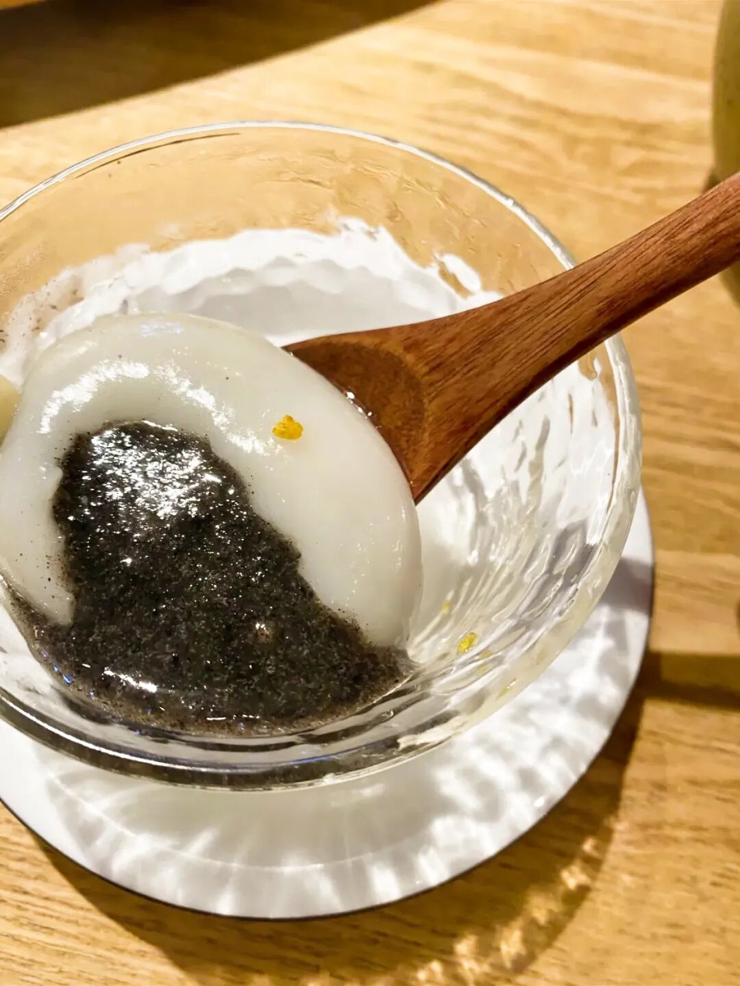 汤圆一碗就是一只,流泪汤圆¥18/个,出动了黑芝麻+核桃+新会陈皮的组合,确实把“皮薄馅足”做到了实处。