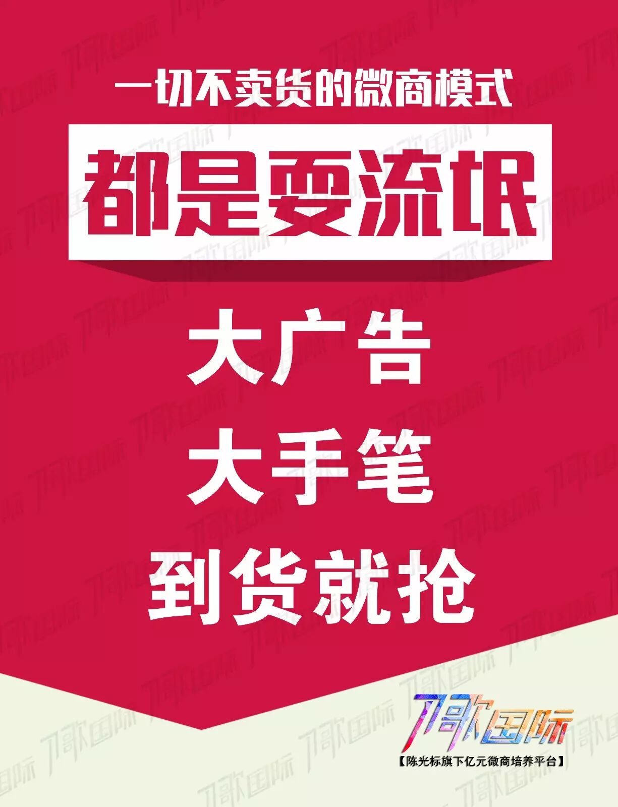 不需要大投入,不需要你会做生意,不需要你有人脉,只要你有1部手机,有1颗想成功的心,陈光标旗下刀歌国际《亿哥亿姐打造体系》就能把你培养成微商大咖,实现梦想!