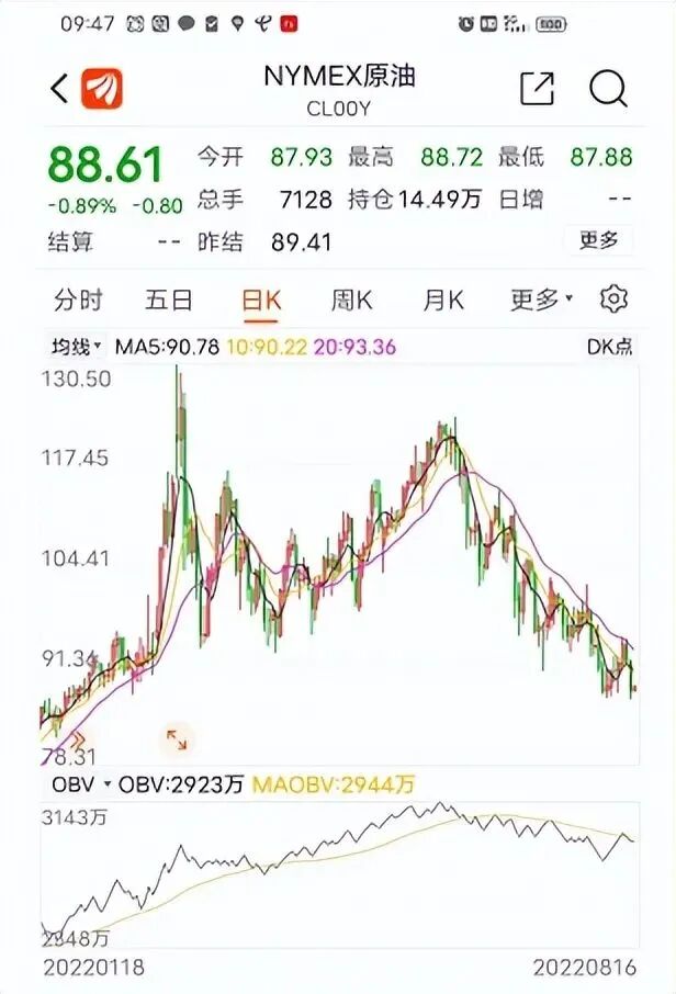北京时间昨日凌晨收盘,纽约原油期货收盘报87.85美元/桶,再度跌破90美元/桶大关,跌幅达4.6%;伦敦布伦特原油期货收盘报93.47美元/桶,跌幅达4.77%,其中纽约原油期货创下今年2月4以来的新低,布伦特原油期货创下今年2月22日以来新低。