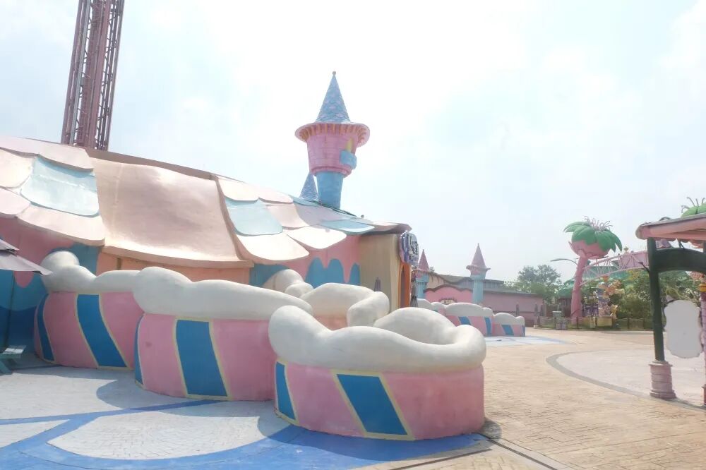 备受瞩目的是在乐园的中心位置,有一座城堡,上面的尖塔都是五颜六色的,随便一站,都可以拍出一些刷爆朋友圈的照片。此外,如果怕热,还可以选择在巧克力工厂玩耍。这里简直是电影《查理和巧克力工厂》的现实世界,进入其中,就像穿梭于电影世界。各种巧克力主题的项目,让大人、小朋友们都可以玩得尽兴。