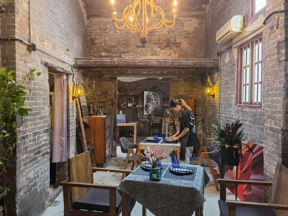 青砖结构的洋楼正静静诉说着百年故事。“当时就有一种‘就是它了’,命中注定的感觉。”2017年,黄竞新希望打造一家侨文化主题餐厅,寻找了超过20条村,都没有找到合适的,没想到机缘巧合下,找到了三泉湾如今所处的长潭村。
