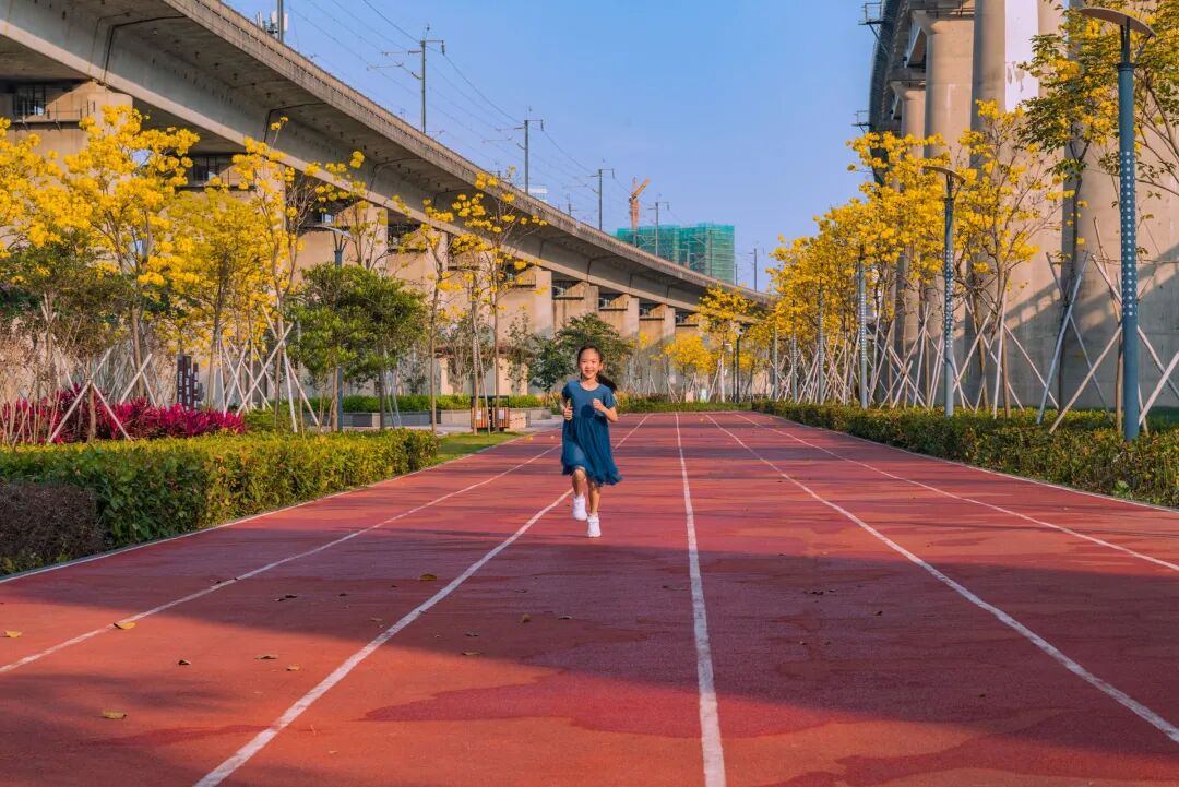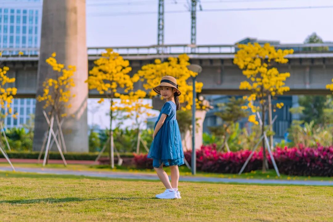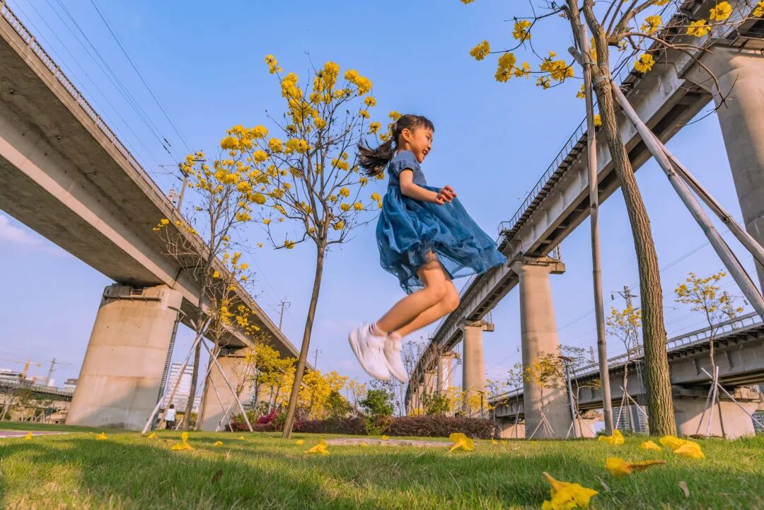 高铁公园内的黄花风铃木成片成海