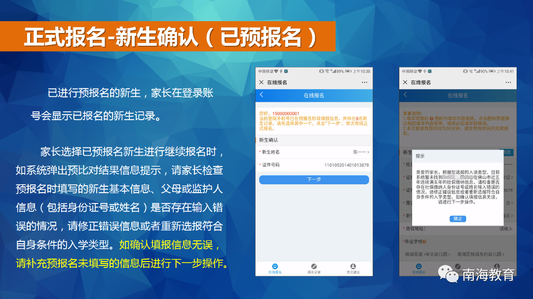 2、现场确认和现场提交材料确认将由各镇街教育办公室指导各学校根据网上报名和审核情况,分期、分批预约家长到校确认。