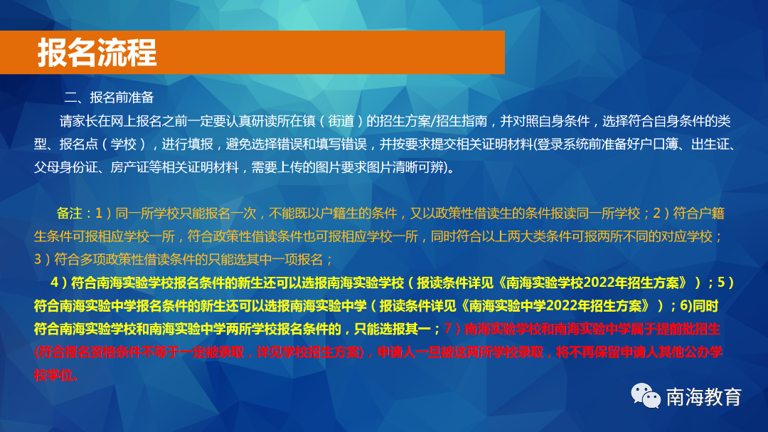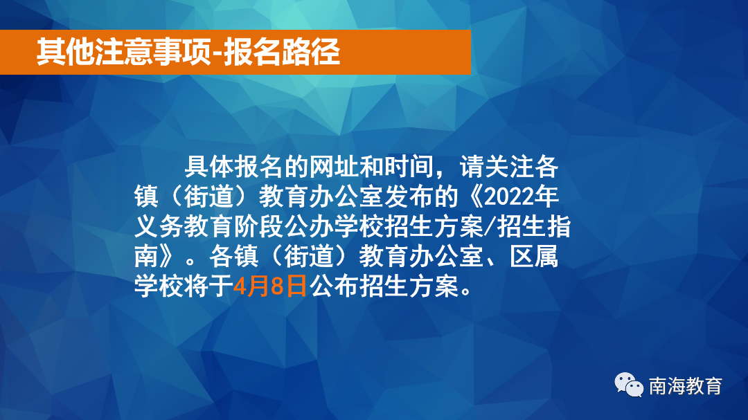 1、网上报名操作指南请留意南海区教育局在官方网站和微信公众号发布的消息。(预计4月6日前后发布指南)