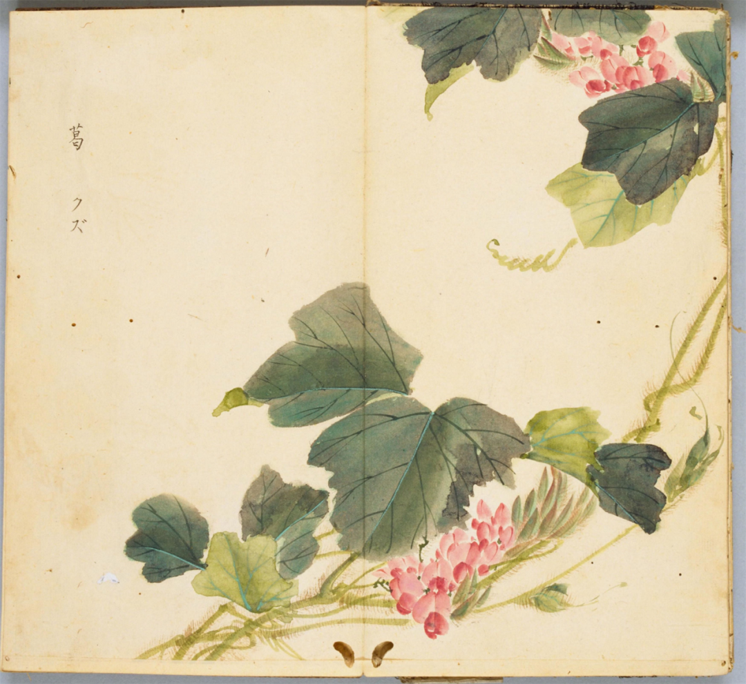 前不久,宜昌的朋友送我一袋野生葛粉,说是他们老家的特产。看到包装袋上的葛藤图片,我想到岩崎灌园《本草图谱》中的一张插图。这张图画得很精细,茎上黄色的硬毛、块根上细长的根须、小叶上的叶托,甚至叶片上的虫洞都如实地画了出来。更有意思的是,本应是绿色的葛叶却涂成了蓝色,导致整个画面有点浮世绘的味道。我把这张图发给朋友,朋友也觉得惊喜:没想到山中寻常的野生藤蔓,入画之后会这么漂亮。