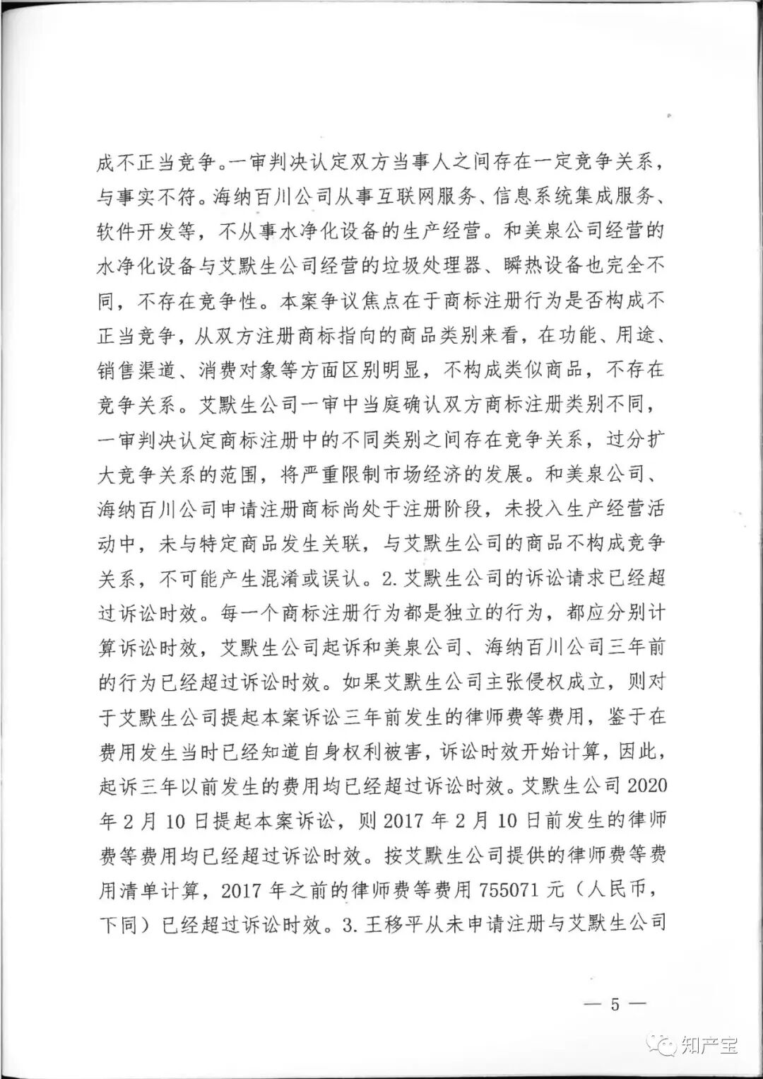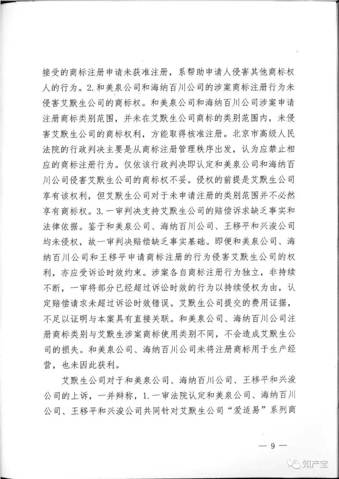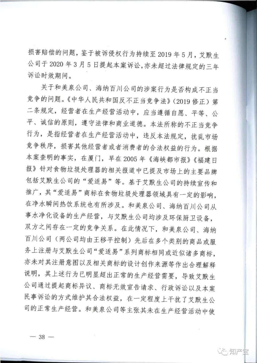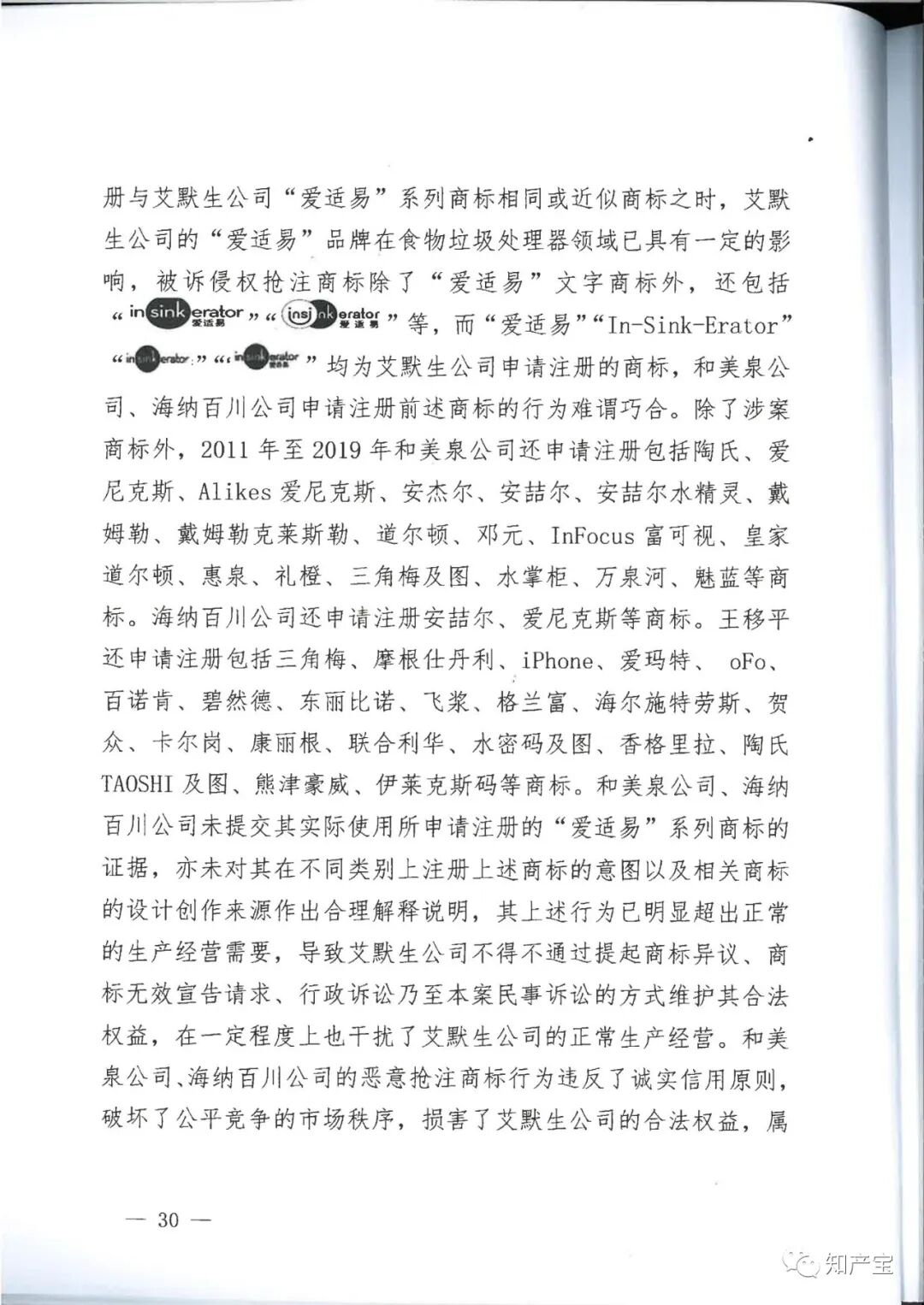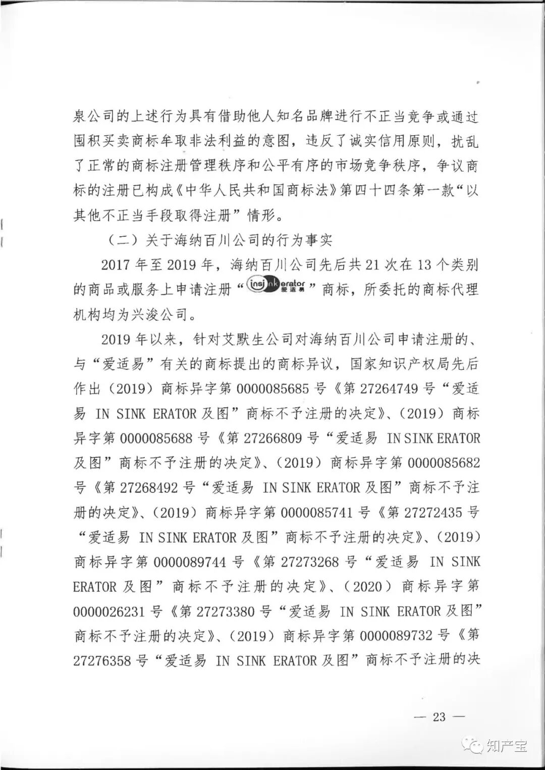 | 一审裁判结果 | 一、和美泉公司、海纳百川公司、王移平应于判决生效之日起立即停止申请注册与艾默生公司"In-Sink-Erator”“爱适易”“ 二、兴浚公司应于判决生效之日立即停止为和美泉公司、海纳百川公司、王移平申请注册与艾默生公司“In-Sink-Erator”“爱适易”“ 三、和美泉公司、王移平应于判决生效之日起十日内连带赔偿艾默生公司经济损失(含制止侵权的合理费用)120万元,兴浚公司对其中的40%,即48万元承担连带赔偿责任; 四、海纳百川公司、王移平应于判决生效之日起十日内连带赔偿艾默生公司经济损失(含制止侵权的合理费用)40万元,兴浚公司对其中的40%,即16万元承担连带赔偿责任; 五、和美泉公司、海纳百川公司、王移平、兴浚公司应于判决生效之日起三十日内在全国公开发行的媒体上刊登声明,消除影响(内容需经一审法院审核),逾期不履行的,将根据判决内容公告,费用由和美泉公司、海纳百川公司、王移平、兴浚公司共同负担; 六、驳回艾默生公司的其他诉讼请求。 | ||||||