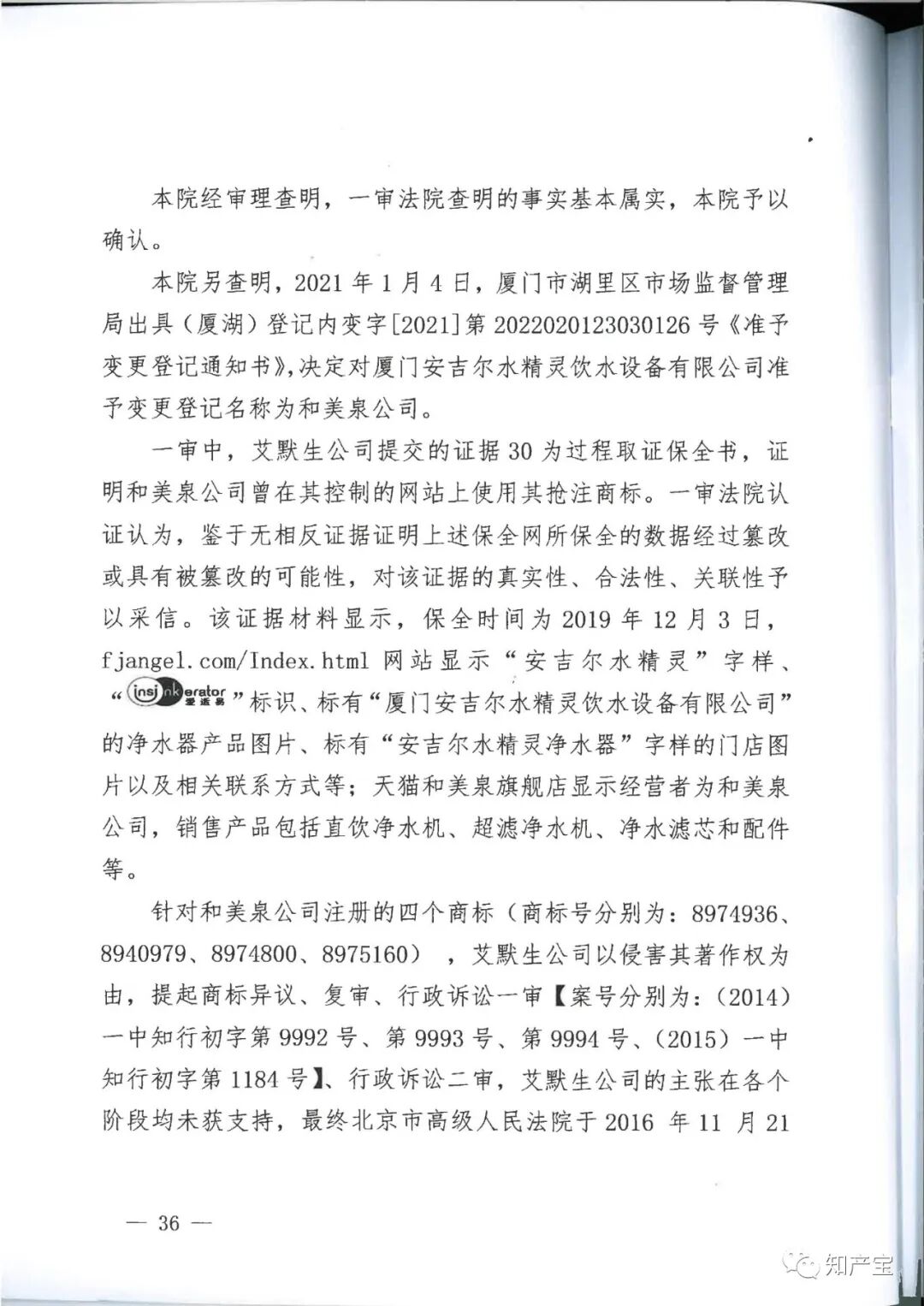 | 当事人 | 上诉人(原审被告):厦门和美泉饮水设备有限公司(原名:厦门安吉尔水精灵饮水设备有限公司),住所地福建省厦门市湖里区嘉禾路808号一楼西面。 法定代表人:王移平,总经理。 上诉人(原审被告):厦门海纳百川网络科技有限公司,住所地福建省厦门市湖里区嘉禾路808号一楼东面。 法定代表人:王移平,总经理。 上诉人(原审被告):王移平,住福建省厦门市。 三上诉人共同委托诉讼代理人:黄有仕,北京德恒(厦门)律师事务所律师。 三上诉人共同委托诉讼代理人:张璇,北京德恒(厦门)律师事务所律师。 上诉人(原审被告):厦门兴浚知识产权事务有限公司,住所地福建省厦门市思明区湖滨南路825号8A室。 法定代表人:阮文龙,总经理。 委托诉讼代理人:叶树蔚,福建法衍律师事务所律师。 | ||||||