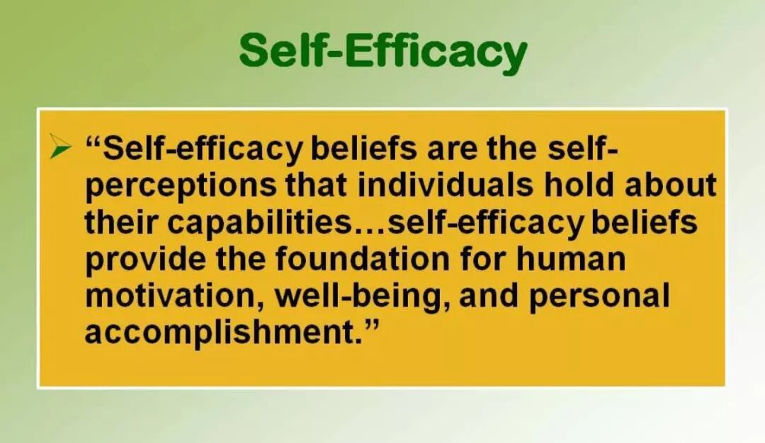 它的中文一般译作「自我效能感」,是美国心理学家班杜拉 1977 年提出的概念。它的定义是:人们对自身能否利用所拥有的技能去完成某项工作行为的自信程度。简单说就是「你是否相信你能做到」。