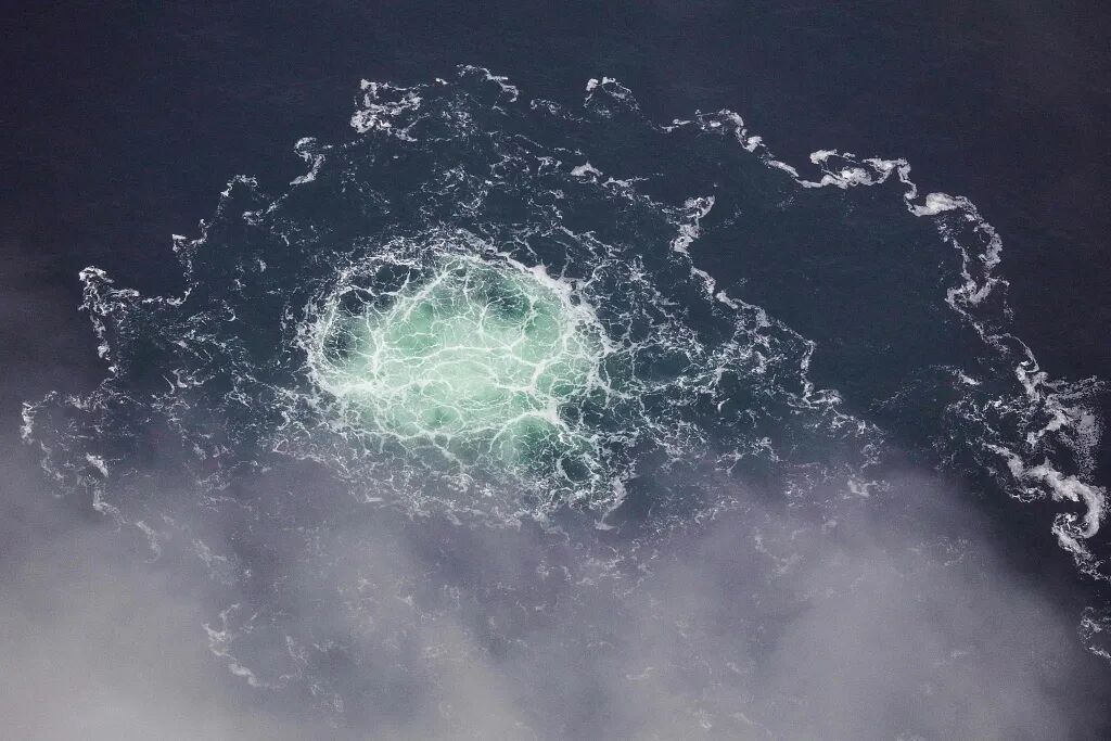 当地时间2022年9月28日,波罗的海瑞典经济区的“北溪”2号天然气管道泄漏的气体正在释放。视觉中国