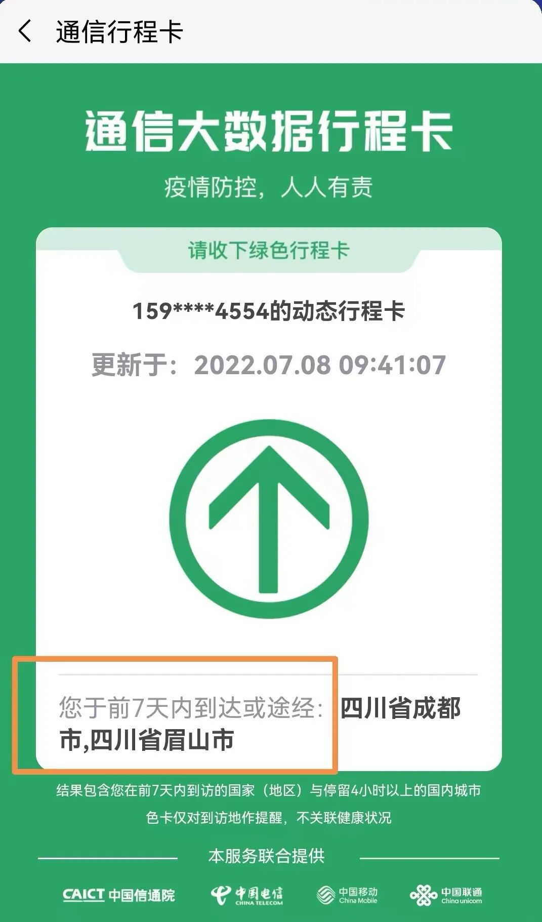 工信部发布公告:根据《新型冠状病毒肺炎防控方案(第九版)》,即日起 “通信行程卡”查询结果的覆盖时间范围由“14天”调整为“7 天”。短信、网页、微信小程序、支付宝小程序、“通信行程卡” APP等查询渠道同步进行应用版本更新。